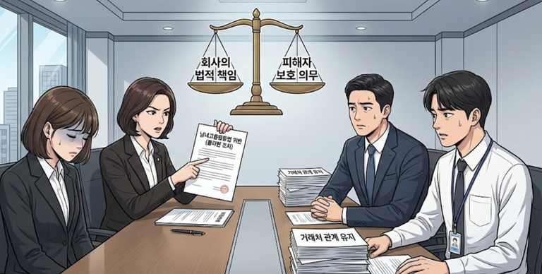 김경태 변호사 역시 “거래 관계를 이유로 성희롱 피해자 보호 의무를 소홀히 하는 것은 정당화될 수 없습니다”라고 못 박았다. 결국 회사는 소극적 대처에서 벗어나 피해자 보호를 최우선으로 실행하고 가해 기업에 공식 항의하는 등 적극적인 자세를 취해야만 더 큰 법적 책임에서 벗어날 수 있다.