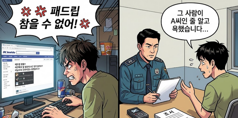 온라인 커뮤니티 '디시인사이드'에서 벌어진 사소한 말다툼이 한 남성을 전과자 위기로 몰아넣었다. 상대방의 패륜적인 욕설, 이른바 '패드립'에 분노를 참지 못하고 대응했다가 수사기관의 연락을 받게 된 것이다. 하지만 법률 전문가들은 수사 과정에서 억울함을 호소하며 무심코 던진 '이 한마디'가 유죄를 확정 짓는 결정적 증거가 될 수 있다고 경고한다.