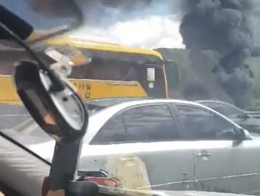 지난 25일 청주시 서원구 남이면 전자제품 공장에서 큰 불이 났다. 그런데 이 화재로 인한 영향은 인근 고속도로에서 광범위하게 발생했다. /유튜브 캡처
